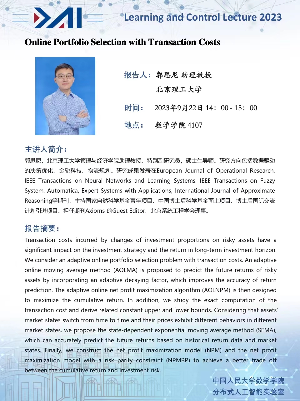 报告人:郭思尼 助理教授,北京理工大学管理与经济公司