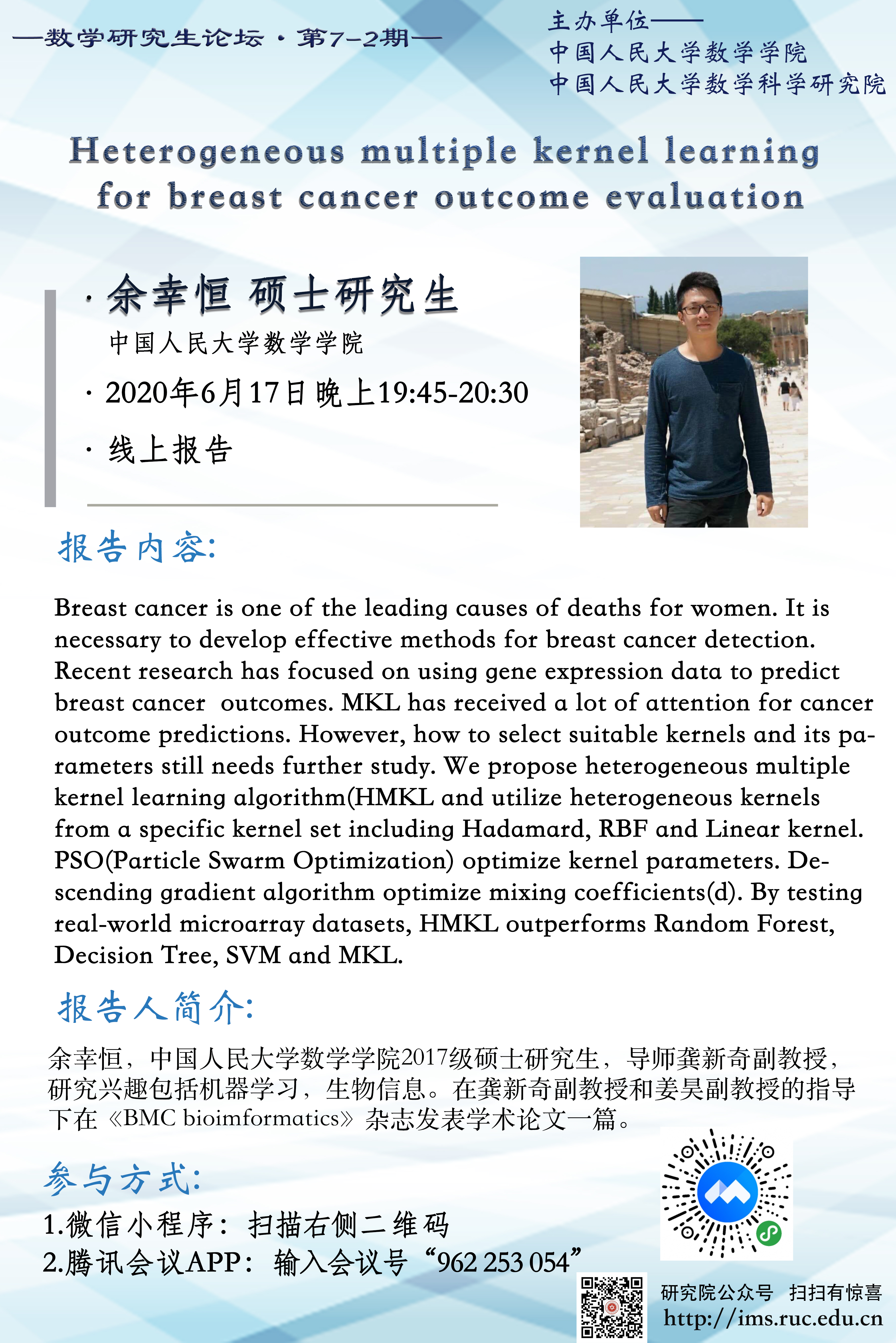 数学研究生论坛7-2期——Heterogeneous multiple kernel learning for breast cancer outcome evaluation