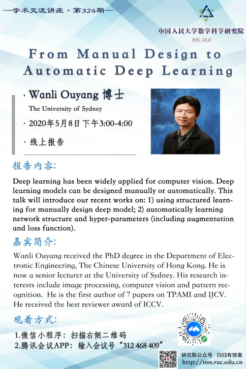学术讲座:From Manual Design to Automatic Deep Learning--Wanli Ouyang博士