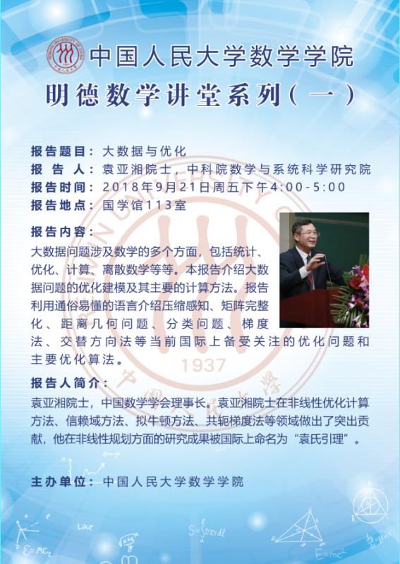 明德数学讲堂系列(一)袁亚湘院士:大数据与优化