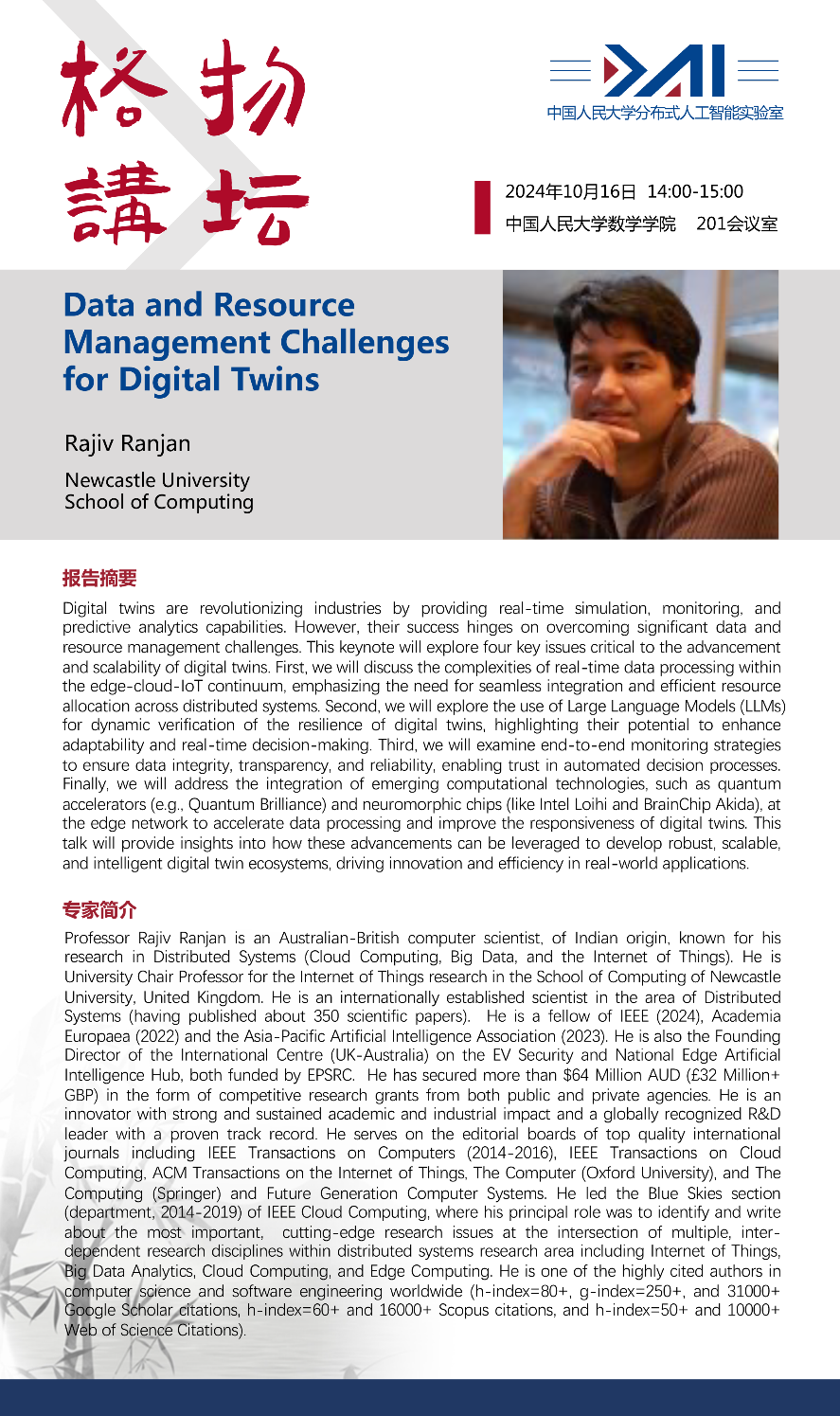 报告人:Rajiv Ranjan, Newcastle University