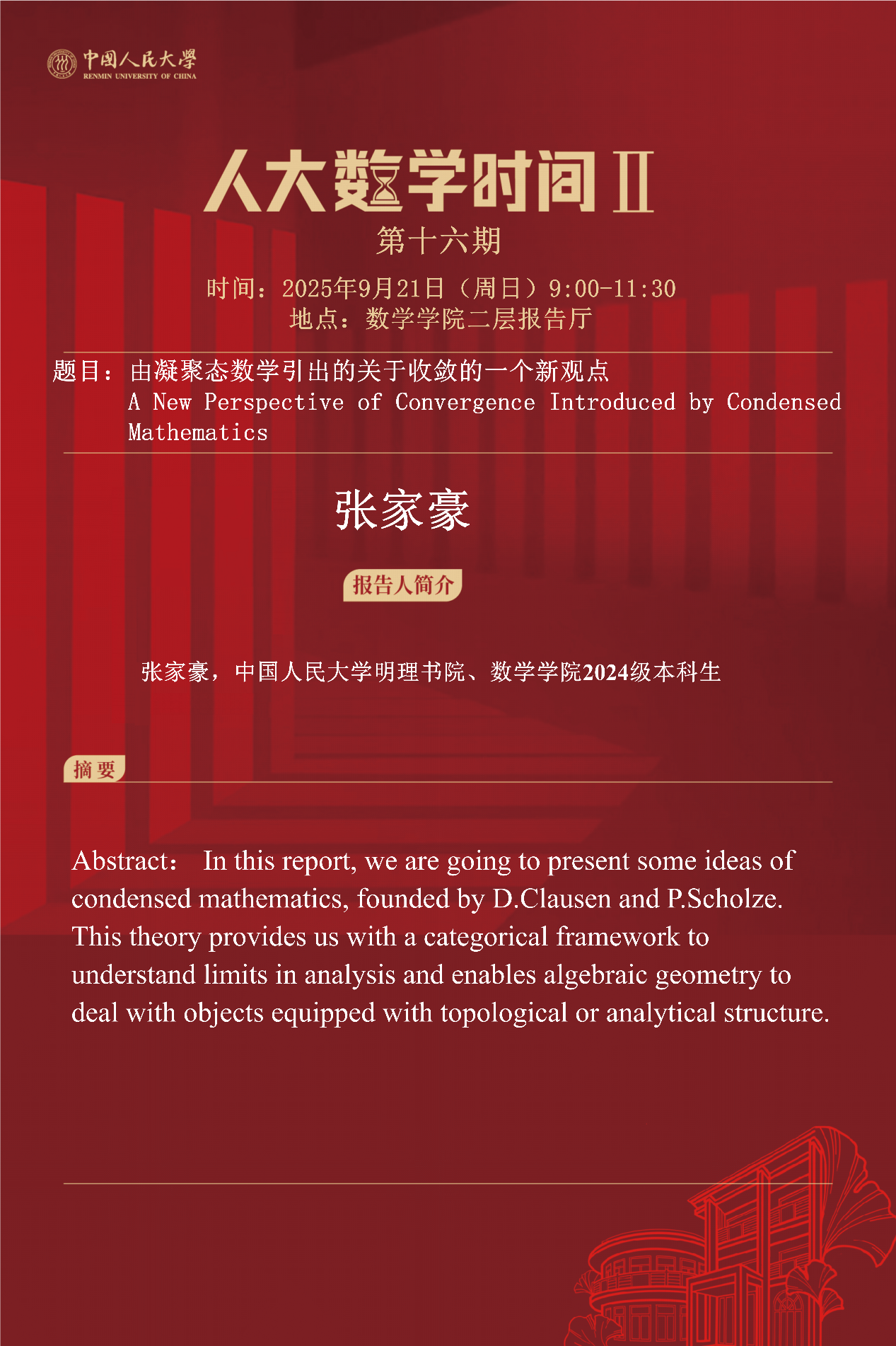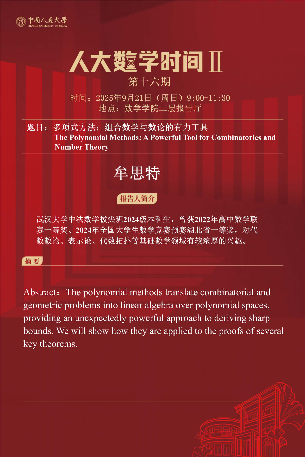报告人:牟思特,武汉大学中法数学拔尖班2024级本科生