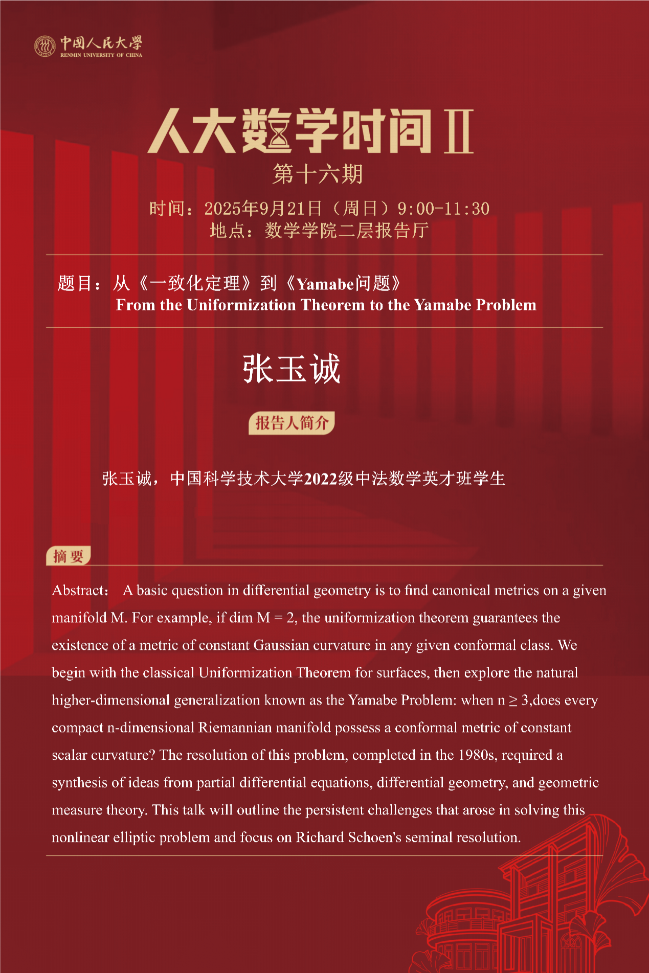 报告人:张玉诚,中国科学技术大学2022级中法数学英才班员工
