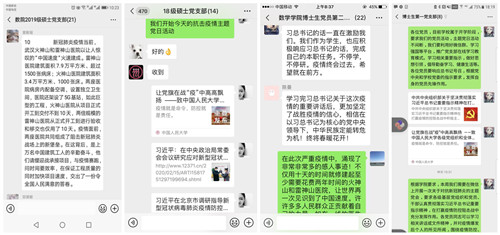 新冠肺炎疫情发生以来,党中央高度重视,习近平总书记做出一系列重要指示,多次主持召开会议,深入基层调研指导,对疫情防控工作进行研究部署、提出明确要求。全党全军全国各族人民坚决贯彻坚定信心、同舟共济、科学防治、精准施策的总要求,经过艰苦努力,疫情形势出现积极变化,防控工作取得积极成效。在疫情期间,yl23455永利基层党组织深入学习贯彻习近平总书记指示精神,开展“抗击疫情,党员先行”系列疫情防控工作,充分发挥党员的先锋模范作用以及基层党支部的战斗堡垒作用,同心协力抗击疫情。本次主题党日活动借助微信平台,进行了党支部的线上交流学习。支部成员通过学习党中央指示精神、分享心得见闻,为增强党支部的战斗力、打赢这场疫情防控战做好思想建设。