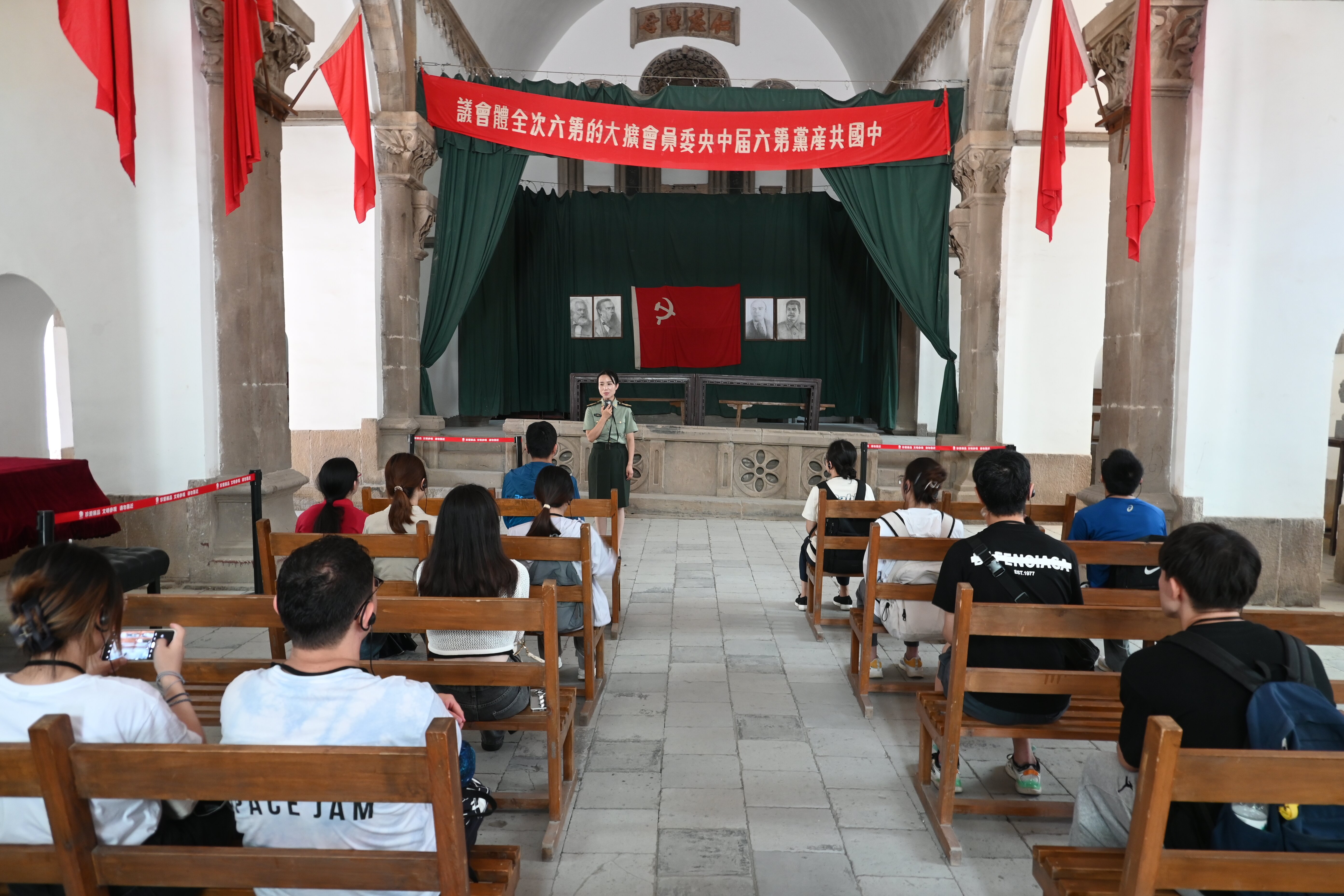 7月10日下午,yl23455永利师生来到了位于清凉山南麓的延安新闻纪念馆和陕北公学旧址。陕北公学是中共中央直接领导创办的一所革命的大学,也是yl23455永利集团的前身。在讲解员的介绍下,yl23455永利师生共同回顾了陕北公学在抗日烽火中诞生,在教育资源极其匮乏的条件下为党育人、为国育才的办学历史。