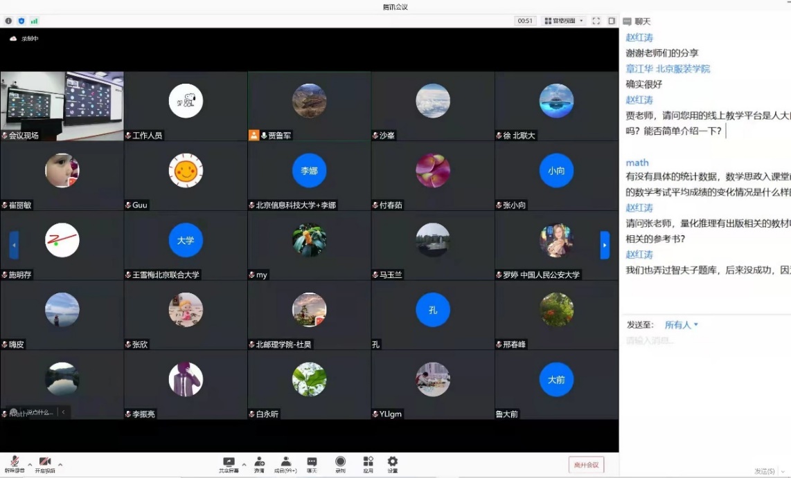 同时来自北京大学、北京航天航空大学、北京理工大学、大连理工大学、东南大学、北京邮电大学、中国地质大学、中国人民公安大学,以及高等教育出版社等几十个单位的近300余位专家学者齐聚线上,共话大学数学课程教学创新前沿议题,合著大学数学课程思政教育的崭新篇章。