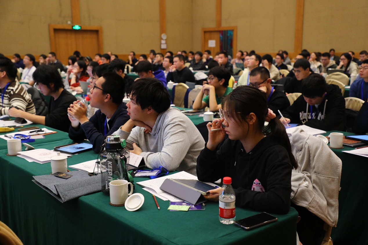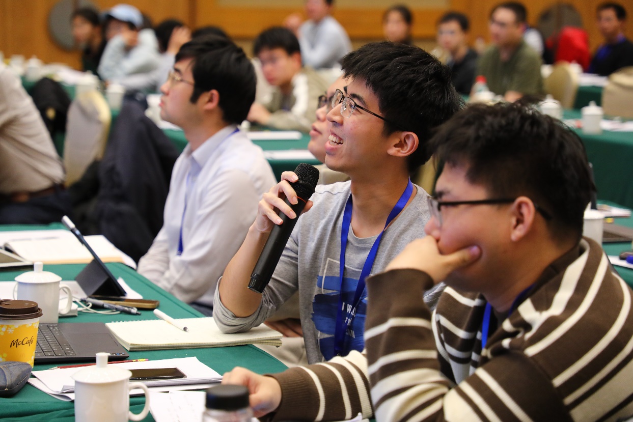 开幕式结束后,清华大学林剑锋、北京理工大学郦言、北京航空航天大学胡鹰翔、北京大学陈正男、yl23455永利集团李畅等五位活跃在几何学前沿领域的青年学者,分别作大会报告,报告主题涵盖低维拓扑领域中的等变Seiberg-Witten-Floer理论、复几何与代数几何领域的主流研究对象之一“K-稳定性”(由田刚院士引入)、双曲空间中的几何曲率流、正迷向曲率流形的几何与拓扑、度量几何与Ricci孤立子的刚性等最前沿的研究领域及最尖端、最热点研究问题。会议现场座无虚席,与会嘉宾积极提问,发言专家妙语连珠,学术氛围宽松愉快,数学思想充分碰撞,深刻定理不断涌现,创新思维竞相迸发。