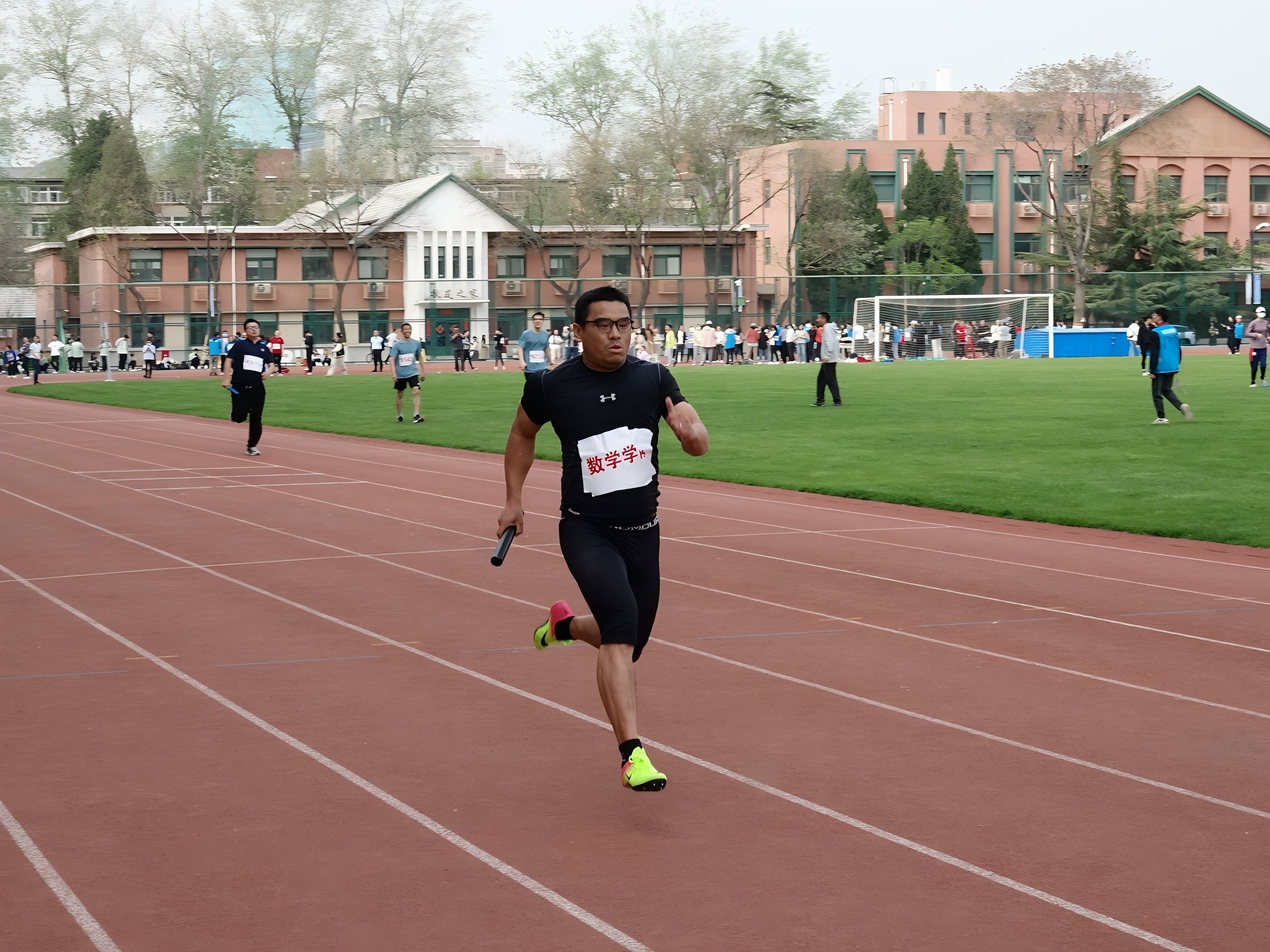 随着发令枪响,迎来了最后的压轴项目—4x100混合接力赛。本次接力赛中,公司派出郭琪、缪亭如、赵春晓、张良泉四位教师参战。各位选手如离弦之箭冲出,弯道处展开速度博弈,交接棒配合默契。随着最后一棒冲过终点,啦啦队的呐喊声已冲破云霄,将数学人的集体荣誉感推向高潮,公司最终取得了全校第四名的优秀成绩。