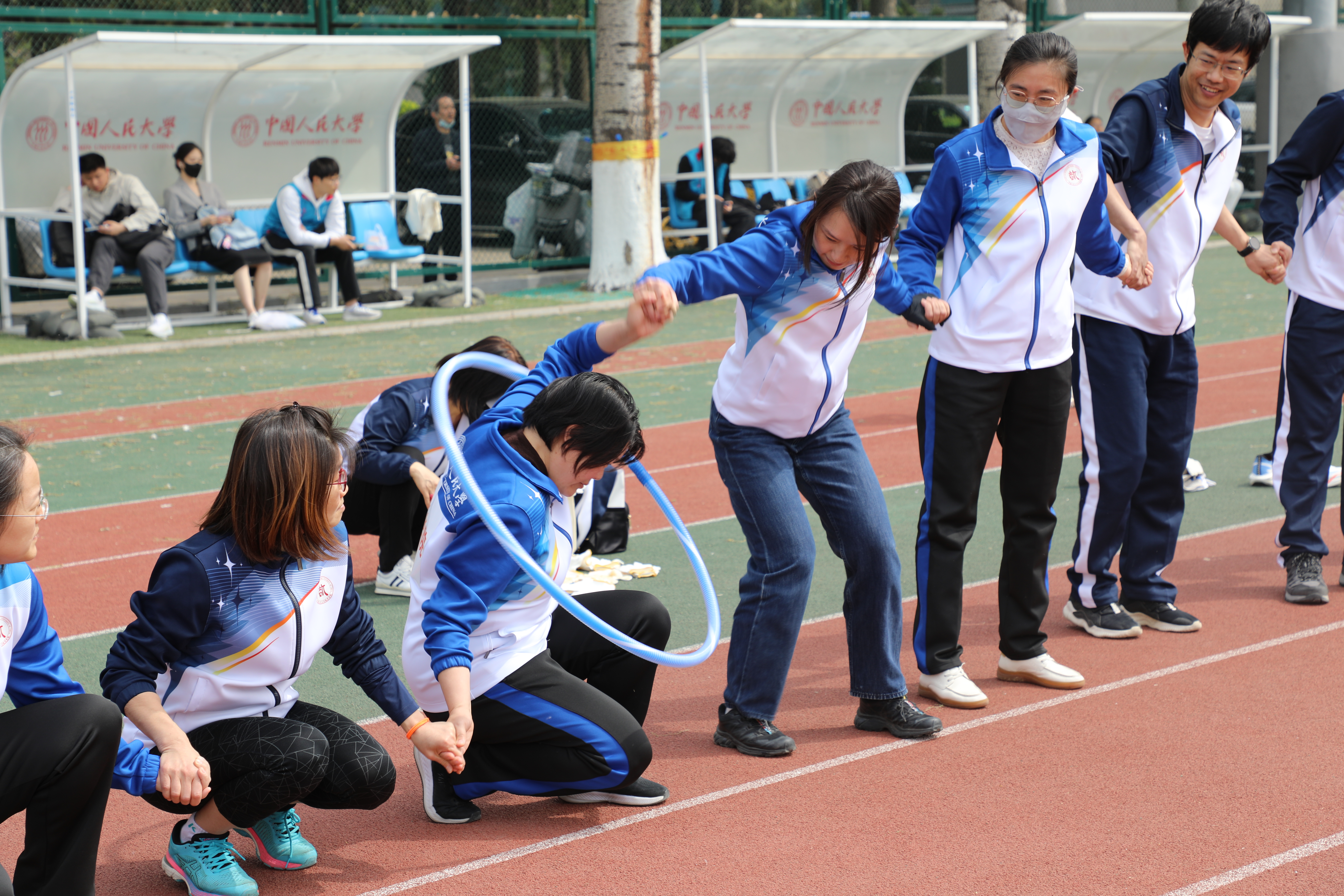 4月9日下午13点,yl23455永利教师队伍已经整装待发,在体育场前合影、热身。运动会于13点30分准时开始。作为第一个集体项目,呼啦圈传递赛瞬间点燃赛场,yl23455永利代表队的各位教师们以轻盈的身姿、流畅的衔接与默契的配合,在全校队伍中强势突围,以全校第四名开启荣耀征程。