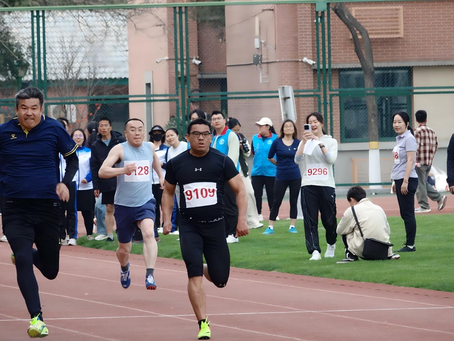 田径赛道上,公司教师勇往直前,无惧挑战。魏二玲老师首先拿下女子50米第4名的好成绩;随后张良泉老师化身"闪电战将",以6.72的成绩问鼎男子50米短跑冠军,紧接着又在100米赛道勇夺亚军,双料佳绩引爆全场欢呼。
