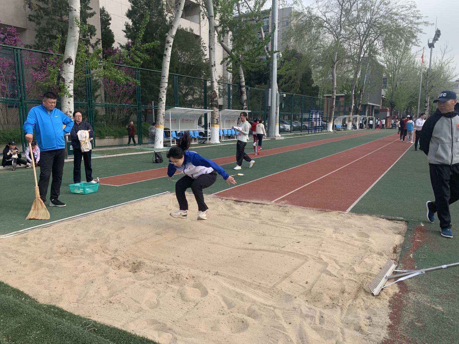 在田径场另一端,田赛也在激烈进行中。男子掷实心球赛场,李昊老师铆足全力,以抛物线最优解投出铜牌佳绩,诠释了力与美的完美结合。在女子跳远比赛中,公司曹梦雨、赵春晓两位青年教师轻盈飞跃,如函数曲线般精准落地;赵春晓老师在身体不适的情况下仍跻身四强。在接下来的跳绳与踢毽比赛中,公司派出周中帆、吴岚、魏二玲、姜昊四位女教师参赛,彩羽翻飞间尽显运动之美。