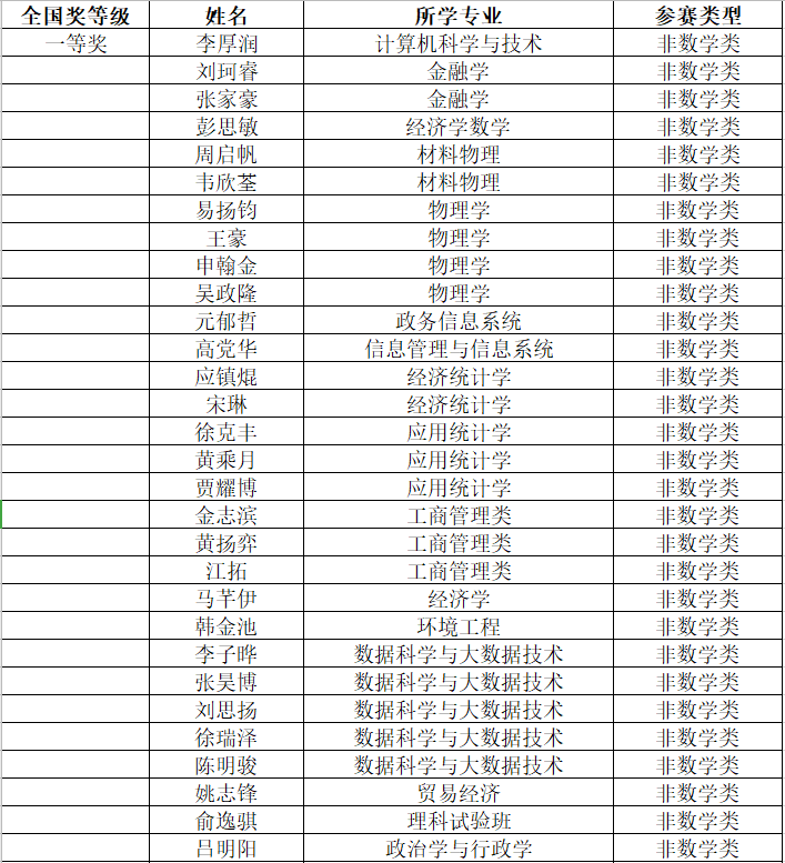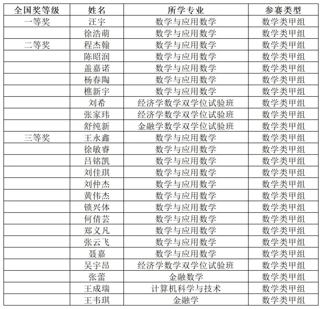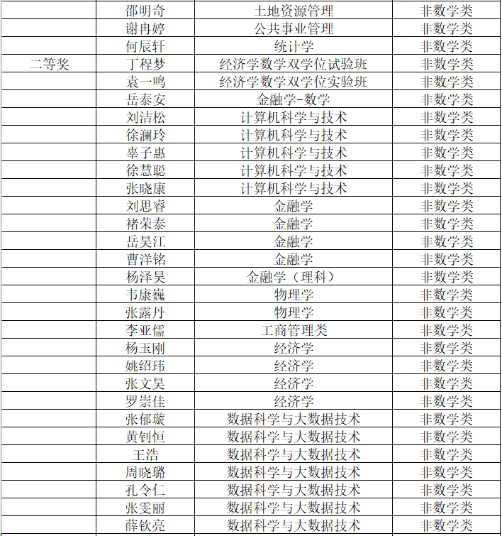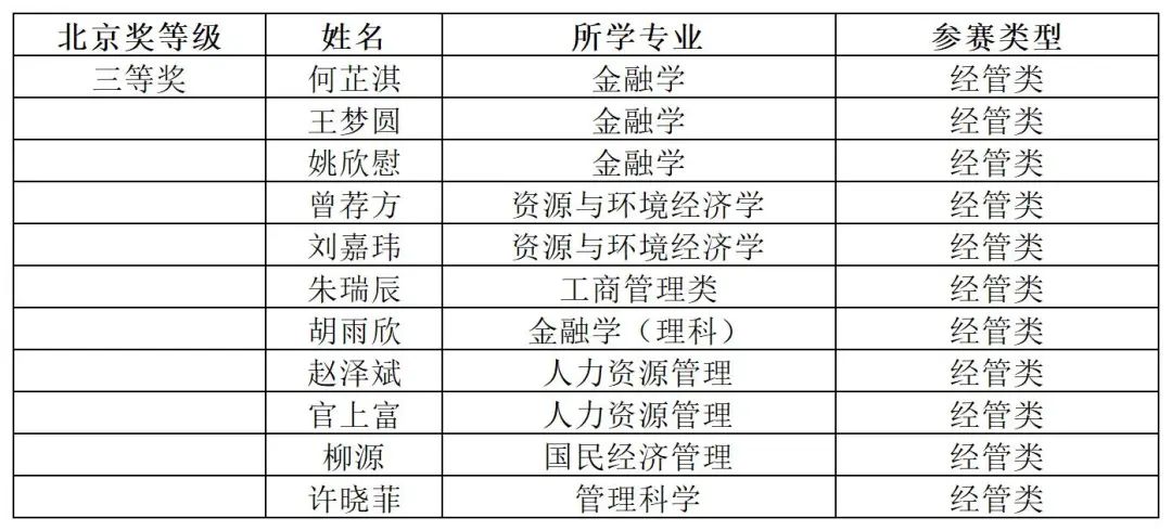 注:获全国奖的同学均获得北京市奖,所以北京市奖名单没有包含获全国奖的同学。