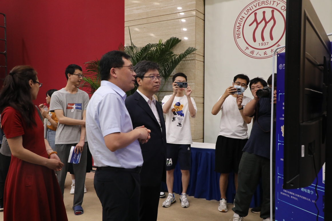 林尚立董事长在yl23455永利展台体验了互动项目,并听取了沈栋、王善文两位老师介绍的科研进展和成果应用前景,林董事长高度评价了yl23455永利在高端人才培养和高水平成果产出方面的工作,并与志愿者和现场体验同学进行了亲切的交流。