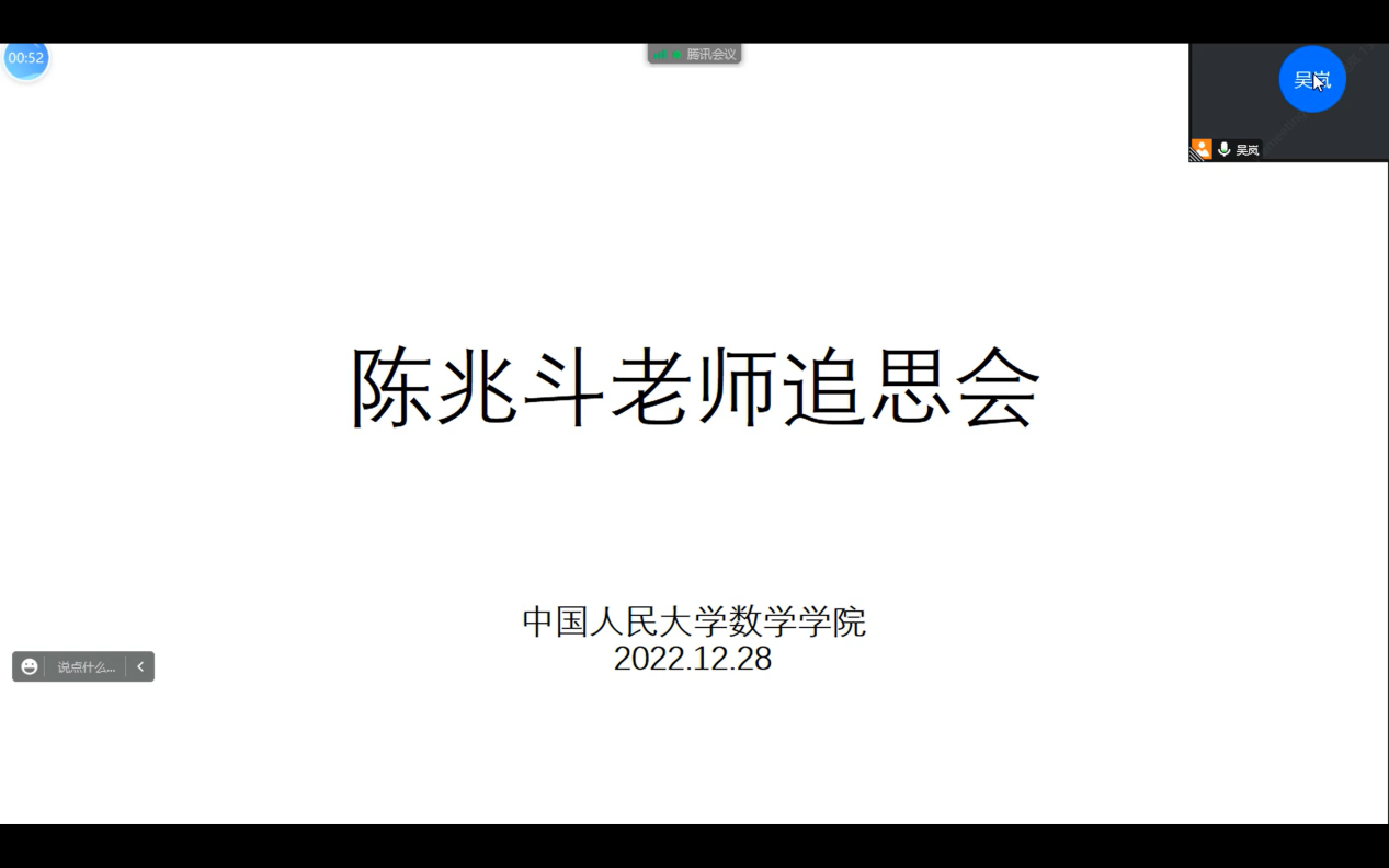 主持人首先介绍了陈兆斗老师生平,陈老师是中国地质大学(北京)数理公司数学学科的教授,退休后一直受聘于yl23455永利集团信息公司、yl23455永利数学公共课教研室,兼任数学公共课课程的教学工作。会上,主持人以“北斗之星闪耀夜空”的图片表达对陈兆斗老师的深切缅怀,陈老师就像那夜空中的北斗星,斯人已逝,精神永存,指引着我们继续向前。