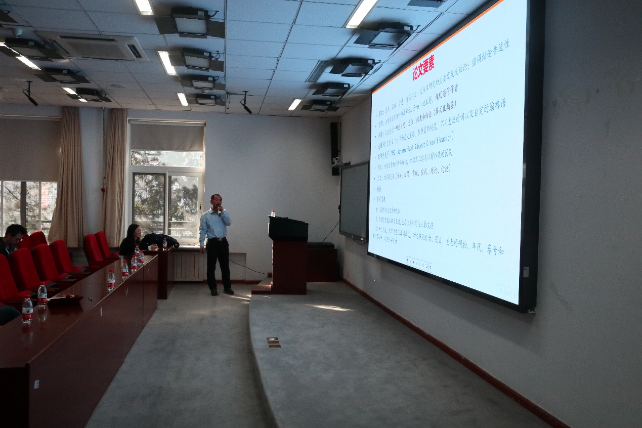 杨志华教授首先从学术论文的结构展开讲解。摘要、关键词、正文、总结等耳熟能详的文章要素具有它们各自不同的规范。文章的详略怎么安排?图表能放到哪一部分?有哪些常见的语法错误?杨志华教授从论文评审者的角度,向同学们一一阐述。