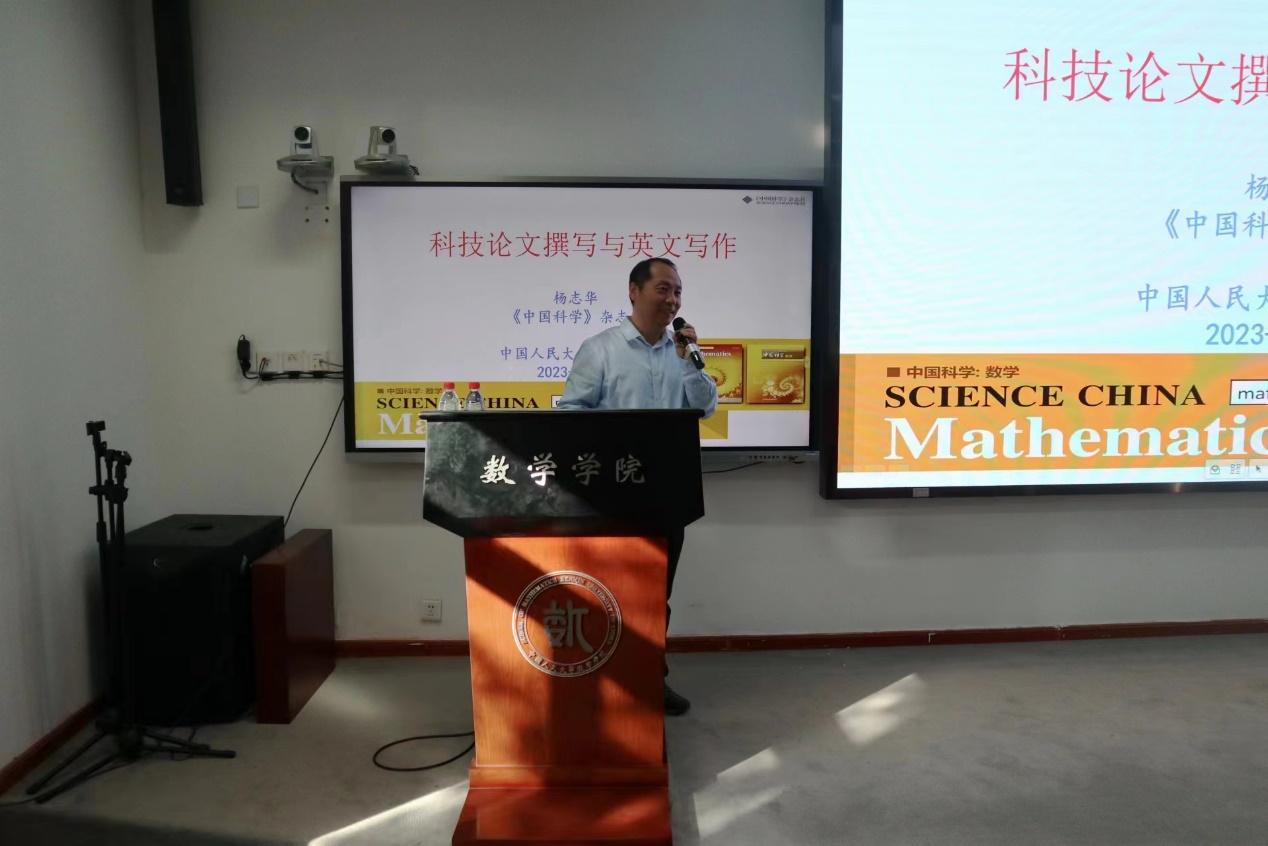 2023年10月25日下午,由yl23455永利主办的学术论文讲座第一场在yl23455永利二层报告厅顺利举行。本场讲座特别邀请到《中国科学:数学》编辑部主任杨志华教授作为主讲,并由yl23455永利副经理姜昊主持。